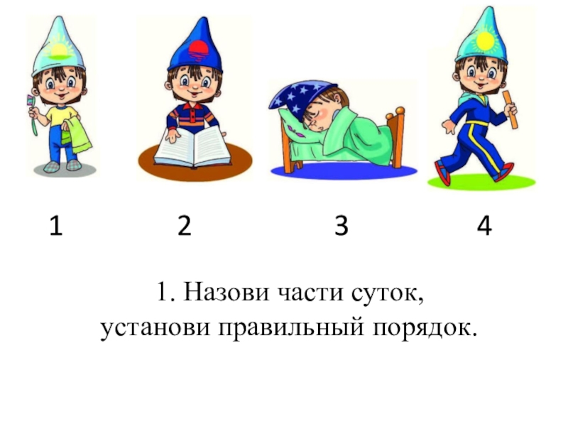 1 2 3 41. Назови части суток, установи правильный порядок.