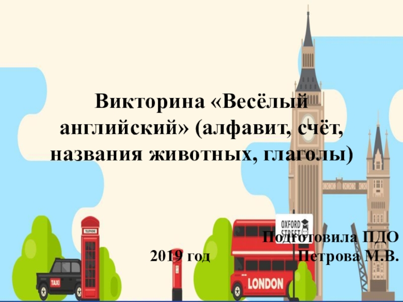 Викторина «Весёлый английский» (алфавит, счёт, названия животных, глаголы)Подготовила ПДО 2019 год