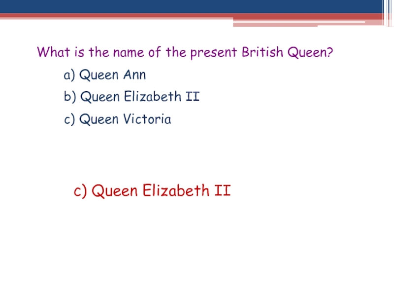 c) Queen Elizabeth II