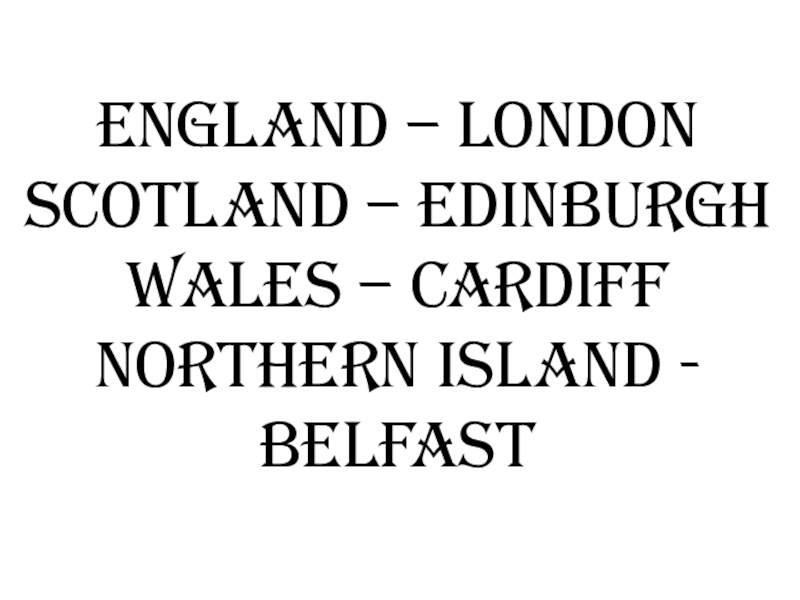 England – LondonScotland – EdinburghWales – CardiffNorthern Island - Belfast