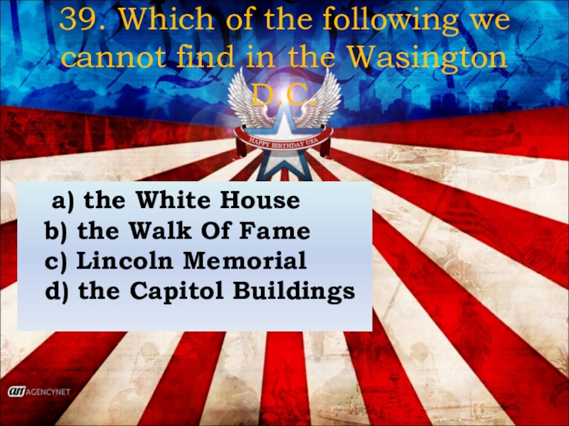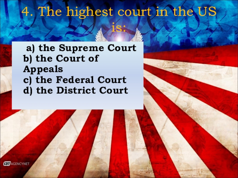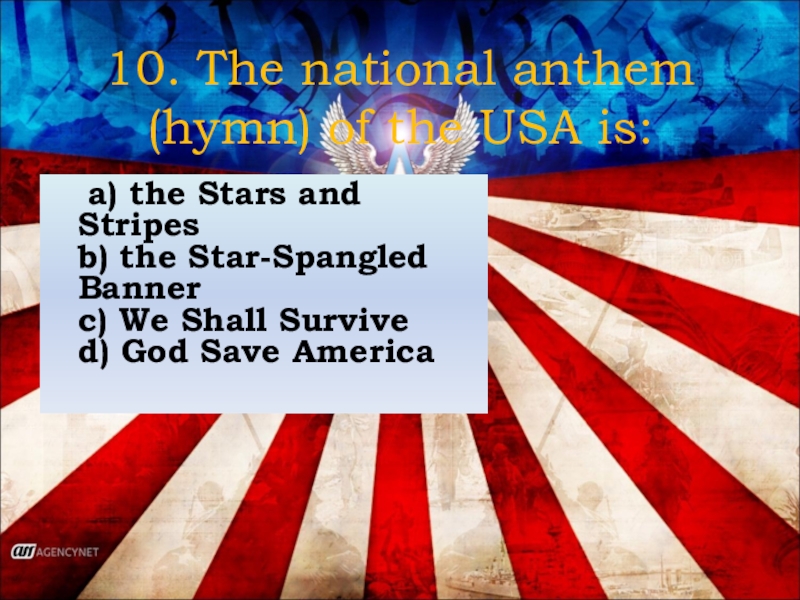 Слайд 1110. The national anthem (hymn) of the USA is: