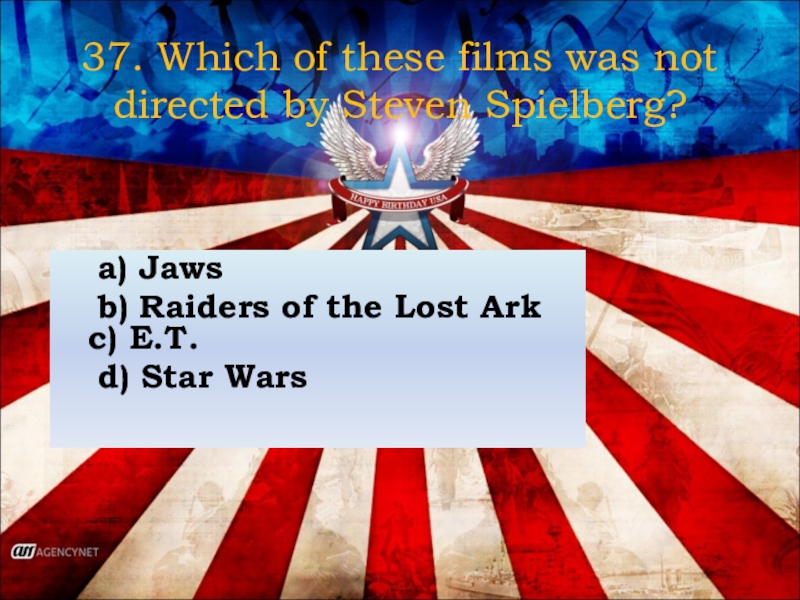 Слайд 3837. Which of these films was not directed by Steven Spielberg?