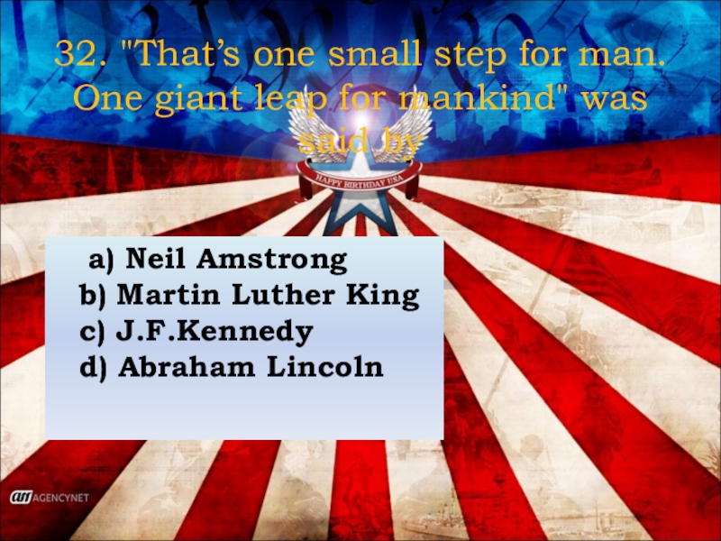 a) G. Washington b) A. Lincoln c) F.D. Roosevelt d) J.F.Kennedy