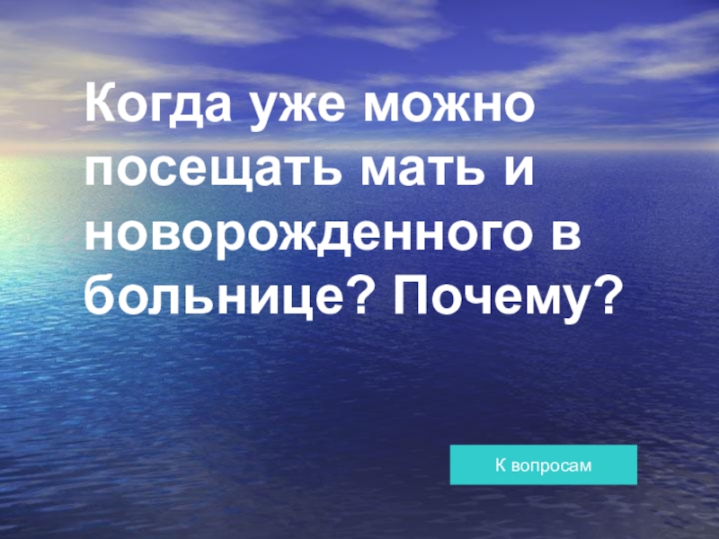 К вопросамКогда уже можно посещать мать и новорожденного в больнице? Почему?
