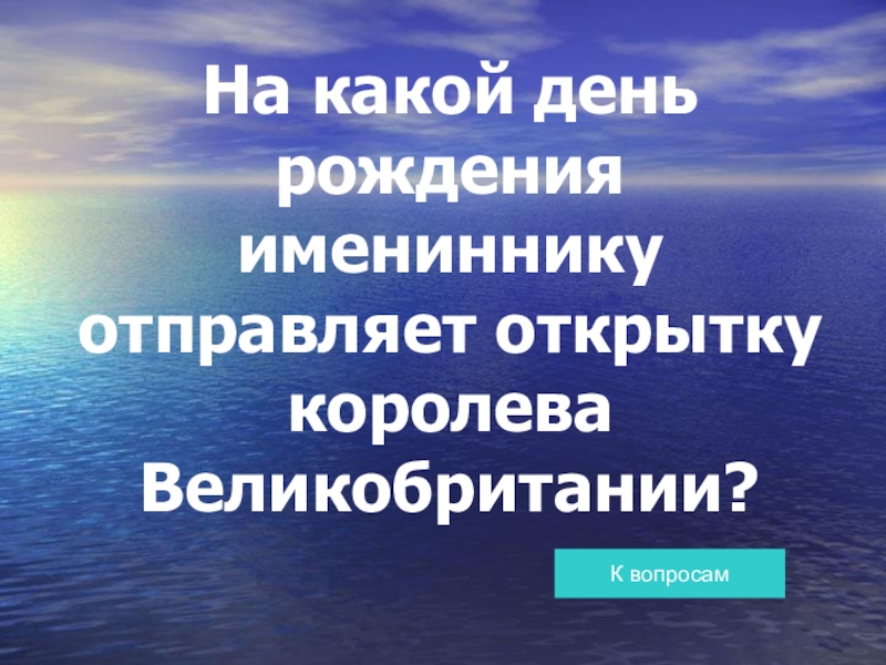 К вопросамНа какой день рождения имениннику отправляет открытку королева Великобритании?