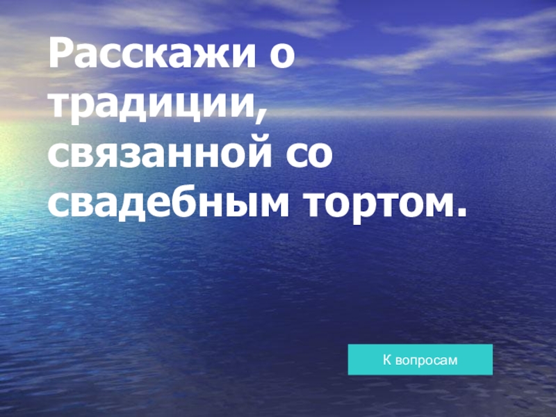 К вопросамРасскажи о традиции, связанной со свадебным тортом.