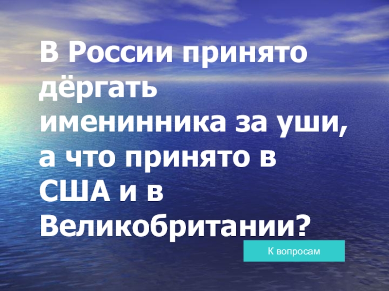 К вопросамВ России принято дёргать именинника за уши, а что принято в США и в Великобритании?