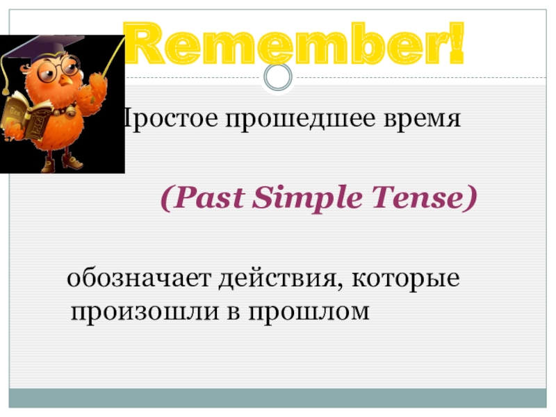 Remember! Простое прошедшее время (Past Simple Tense) обозначает действия, которые произошли в прошлом