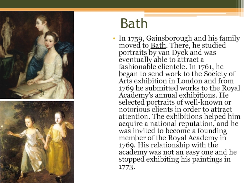 In 1759, Gainsborough and his family moved to Bath. There, he studied
