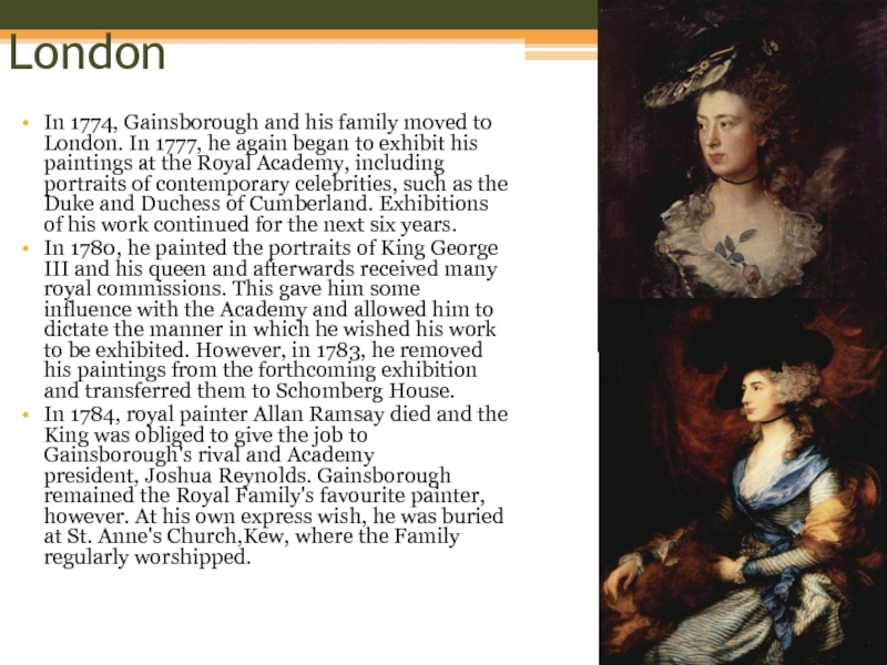 In 1774, Gainsborough and his family moved to London. In 1777,