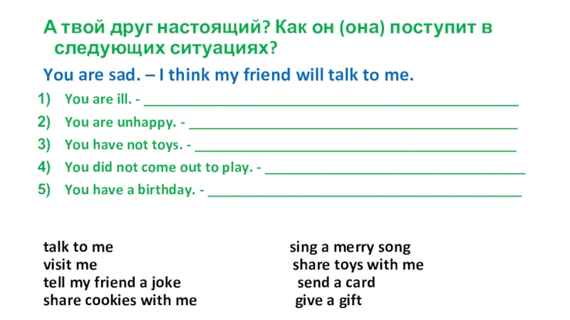 А твой друг настоящий? Как он (она) поступит в следующих ситуациях?