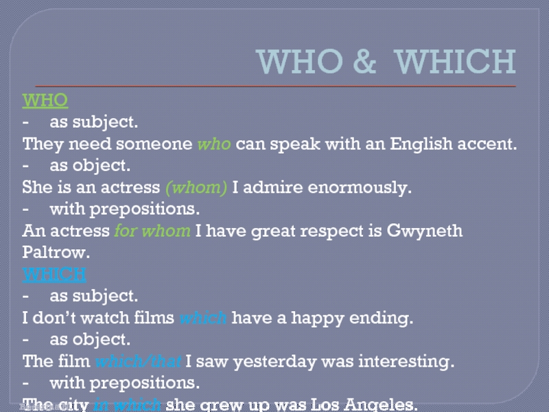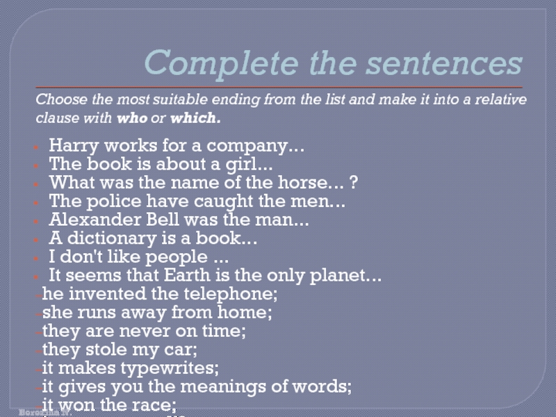 Choose the most suitable ending from the list and make it into a relative clause with who or which.