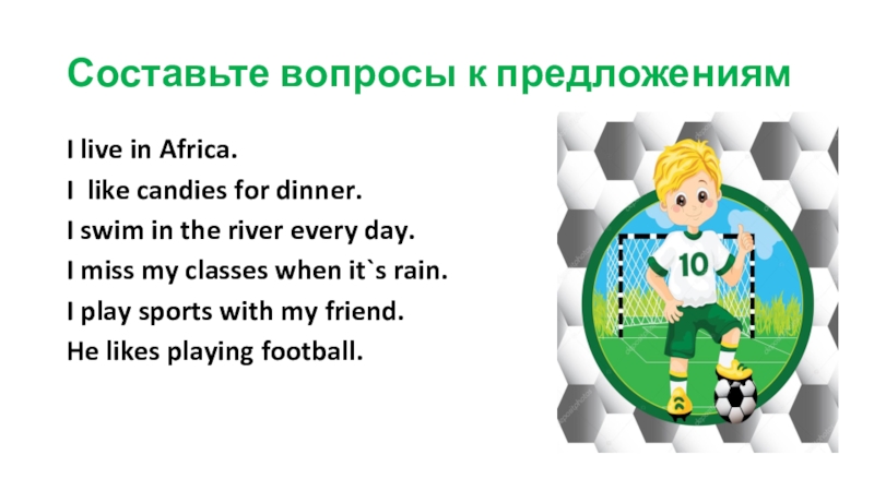 Tim: I like football. My father and I watch every football match.