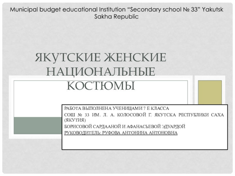 Municipal budget educational Institution “Secondary school № 33” Yakutsk Sakha Republic