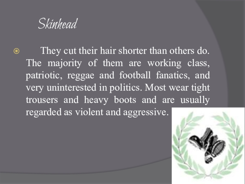 Skinhead   They cut their hair shorter than others do. The majority of them are working