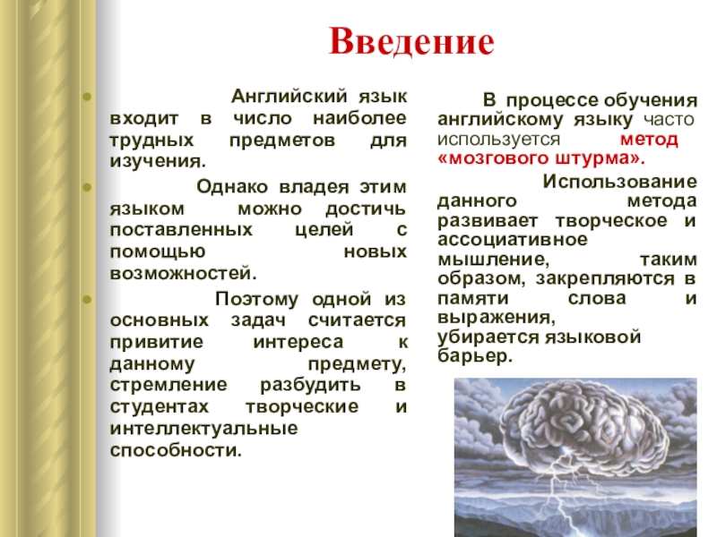 В процессе обучения английскому языку часто используется метод «мозгового штурма».