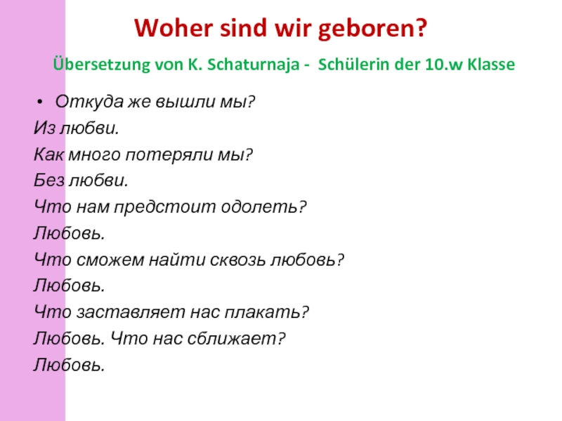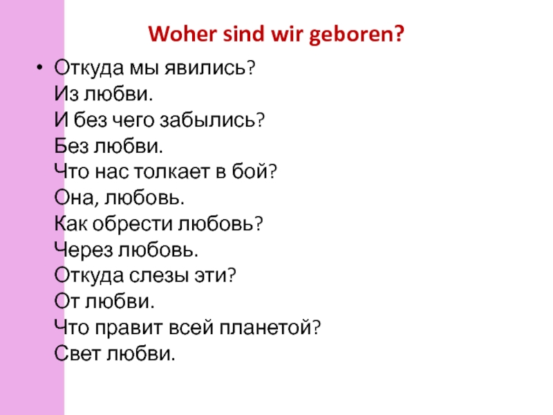 Und sprich: ,,Woher kommt Liebe?‘‘