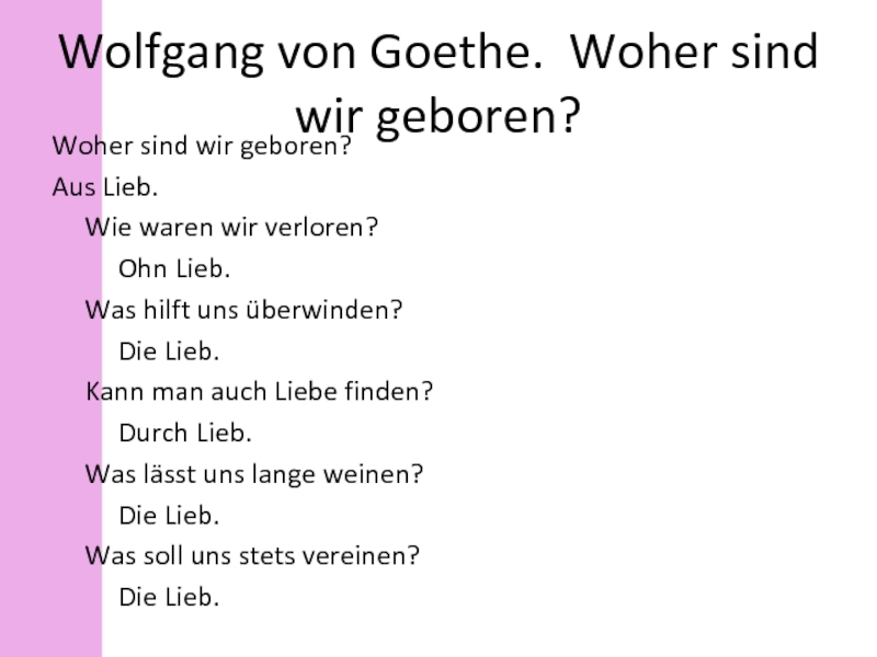Слайд 8Wolfgang von Goethe. Woher sind wir geboren?