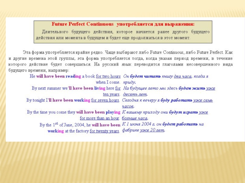 действие, которое начнется ранее другого будущего действия и будет продолжаться в этот момент.
