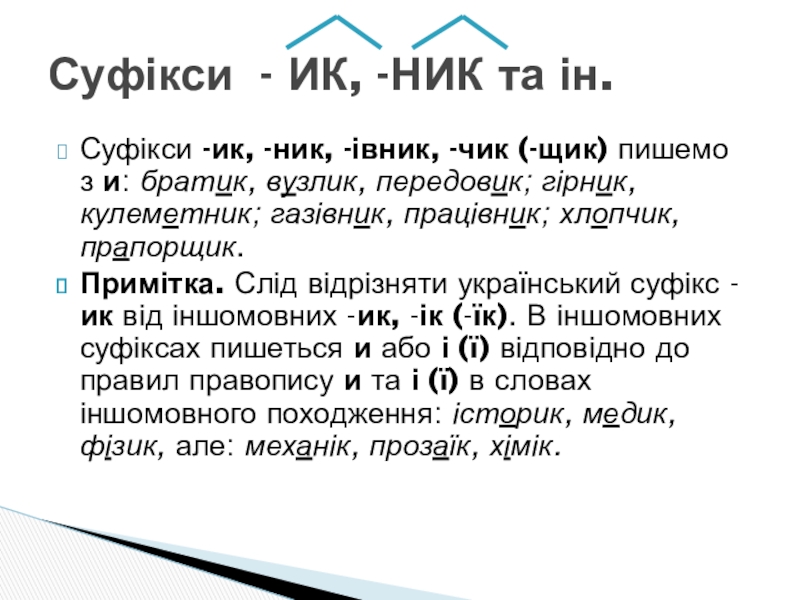 Суфікси - ИК, -НИК та ін.