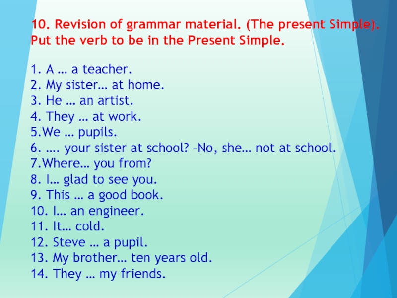 Слайд 2410. Revision of grammar material. (The present Simple).