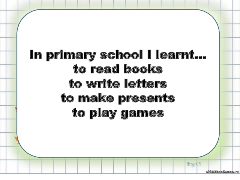 In primary school I learnt…to read booksto write lettersto make presentsto play games