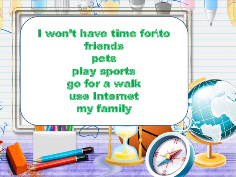 I won’t have time for\tofriendspetsplay sportsgo for a walkuse Internetmy family