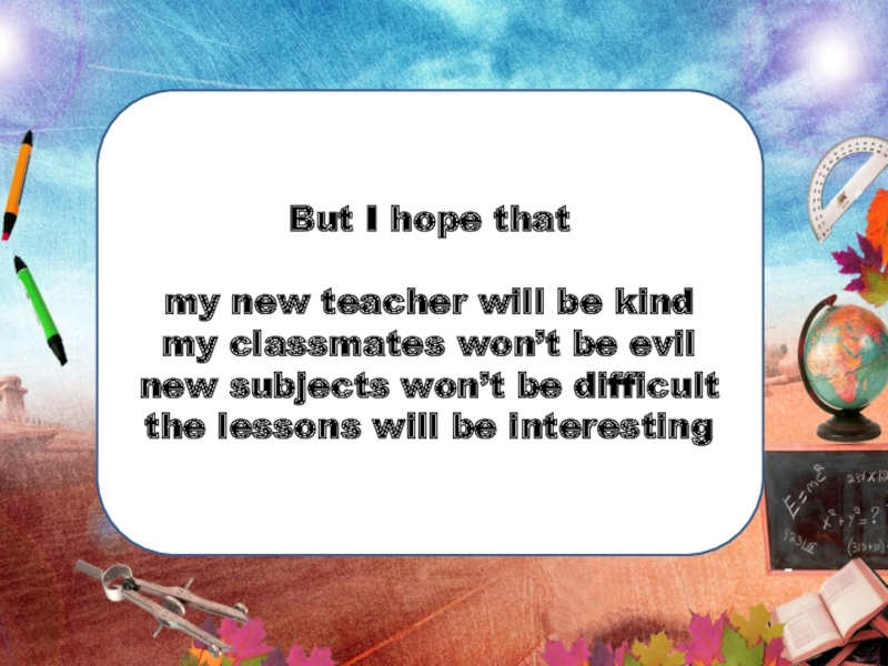 But I hope thatmy new teacher will be kindmy classmates won’t be evilnew subjects won’t be difficultthe