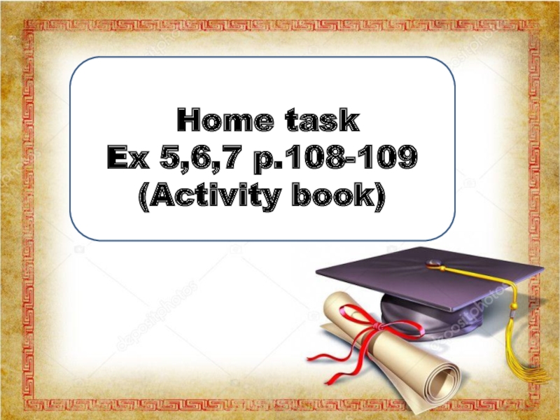 Home taskEx 5,6,7 p.108-109(Activity book)
