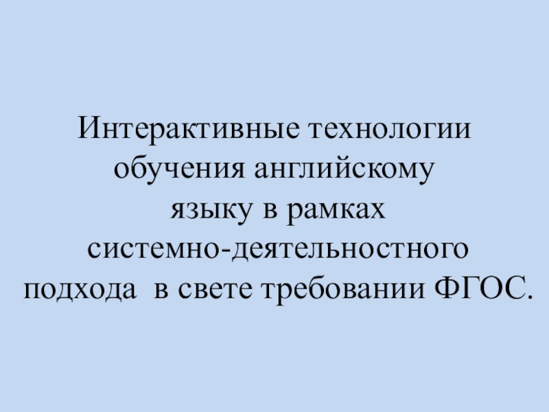 Презентация, доклад на тему Применение интерактивных технологии обучения английскому языку в рамках системно-деятельностного подхода в свете требовании ФГОС