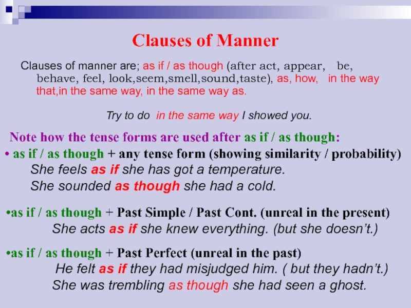 as if / as though + Past Simple / Past Cont. (unreal in the present)