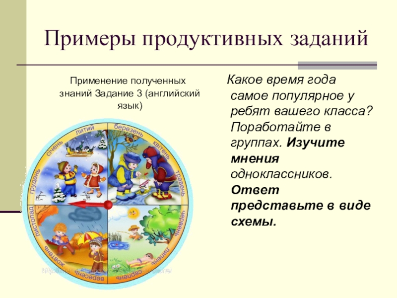 Какое время года самое популярное у ребят вашего класса? Поработайте в группах. Изучите мнения одноклассников. Ответ представьте в виде схемы.