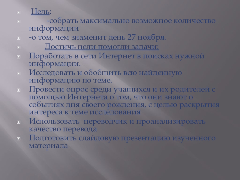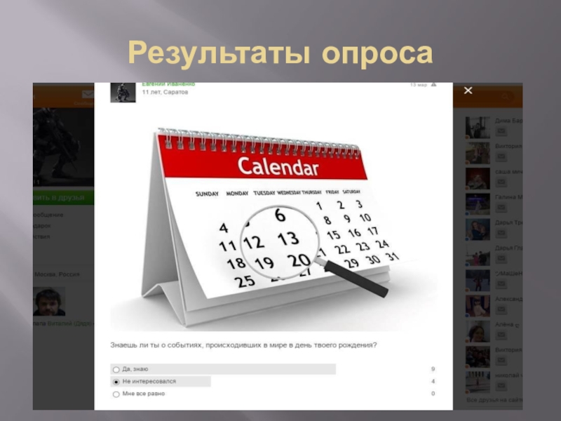Провести опрос среди учащихся и их родителей с помощью Интернета о том, что они знают о событиях дня своего рождения, с целью раскрытия интереса к теме исследования