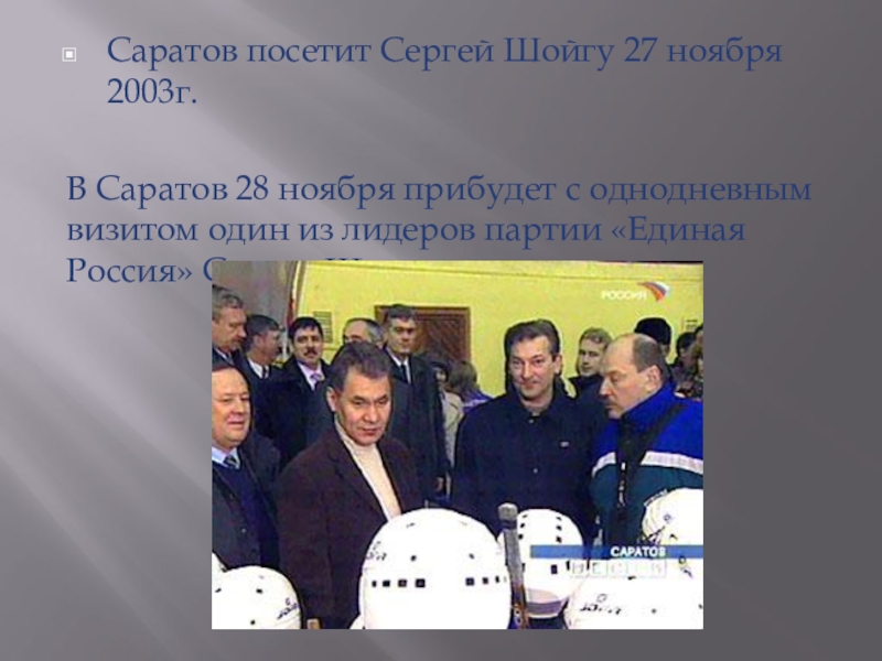 Слайд 6Саратов посетит Сергей Шойгу 27 ноября 2003г.