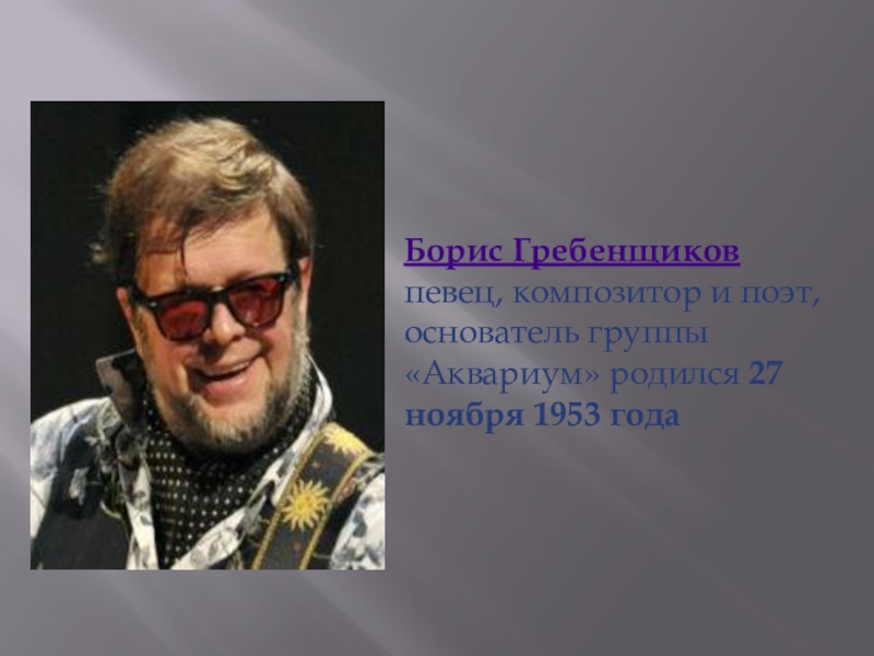 певец, композитор и поэт, основатель группы «Аквариум» родился 27 ноября 1953