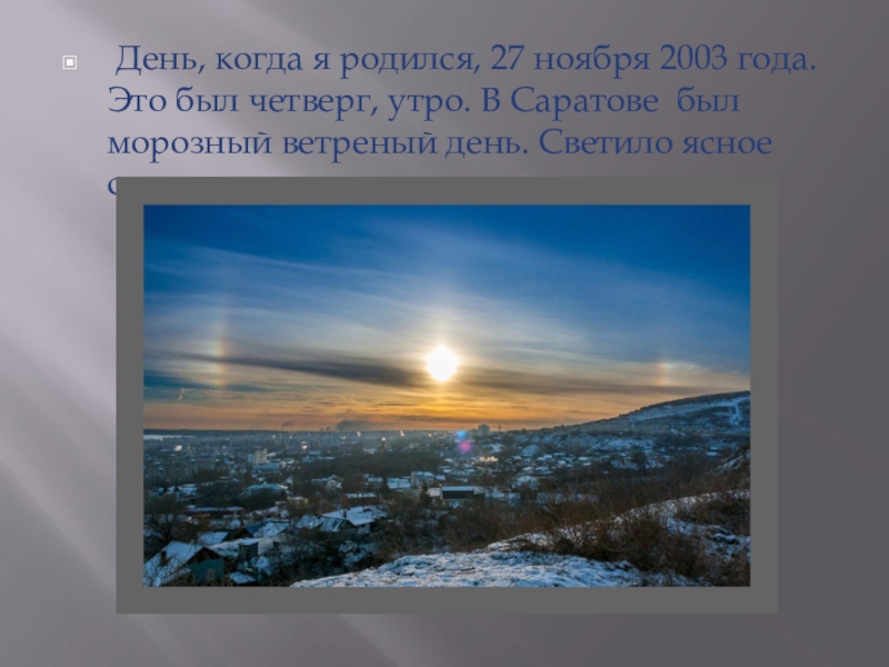 Слайд 3 День, когда я родился, 27 ноября 2003 года. Это был