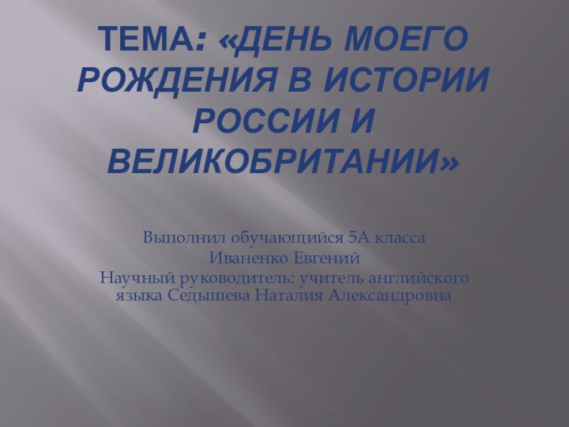 Научный руководитель: учитель английского языка Седышева Наталия Александровна