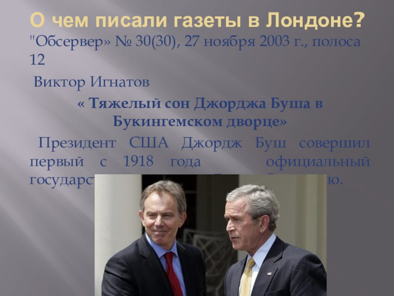 Президент США Джордж Буш совершил первый с 1918 года официальный государственный визит в Великобританию.