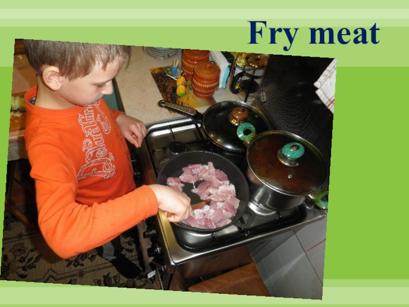 2. Slice meat in cubes and fry in oil.