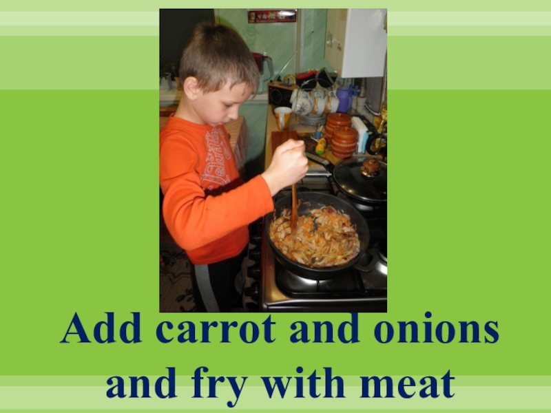 4. Add carrot and onions to meat and fry.