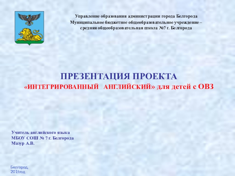 Муниципальное бюджетное общеобразовательное учреждение – средняя общеобразовательная школа №7 г. Белгорода