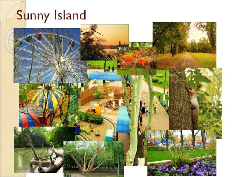 my favourite place. This place is a park called “Solnechniy ostrov” I like nature there. This place is very beautiful. The air is clean and fresh too. There are a lot of pines, firs, birches and oaks in the park.