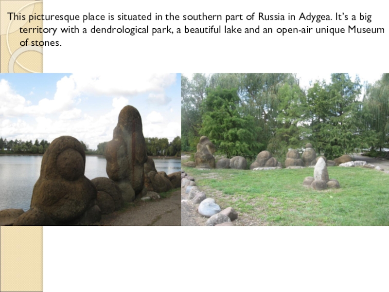 in Adygea. It’s a big territory with a dendrological park, a beautiful lake and an open-air unique Museum of stones.