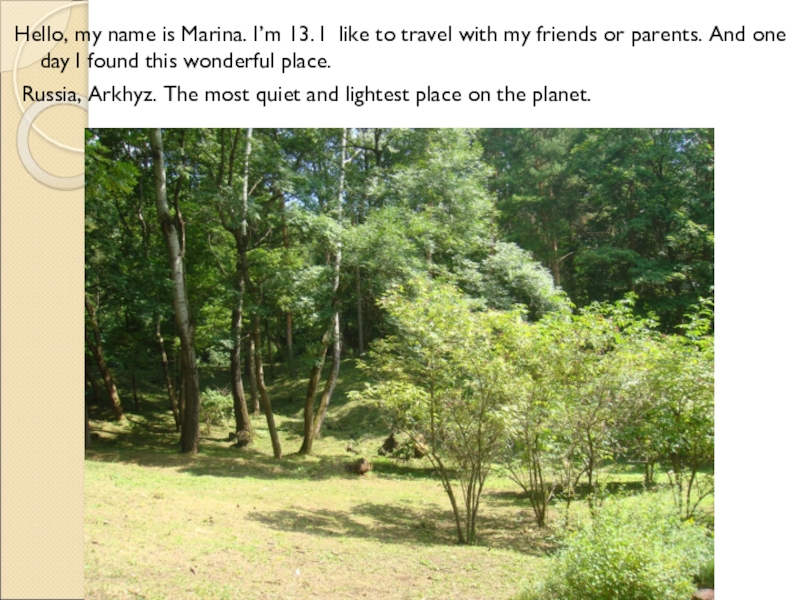 Слайд 17Hello, my name is Marina. I’m 13. I like to travel