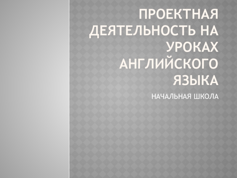 Проектная деятельность на уроках английского языкаНАЧАЛЬНАЯ ШКОЛА