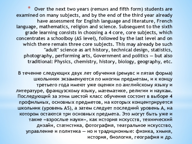 Слайд 8Over the next two years (remuvs and fifth form) students are