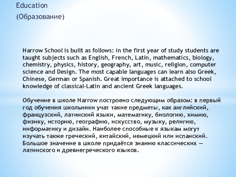 Слайд 1Harrow School -an independent boarding school for boys in Harrow, London,