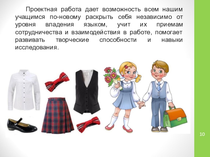 Слайд 10Проектная работа дает возможность всем нашим учащимся по-новому раскрыть себя независимо