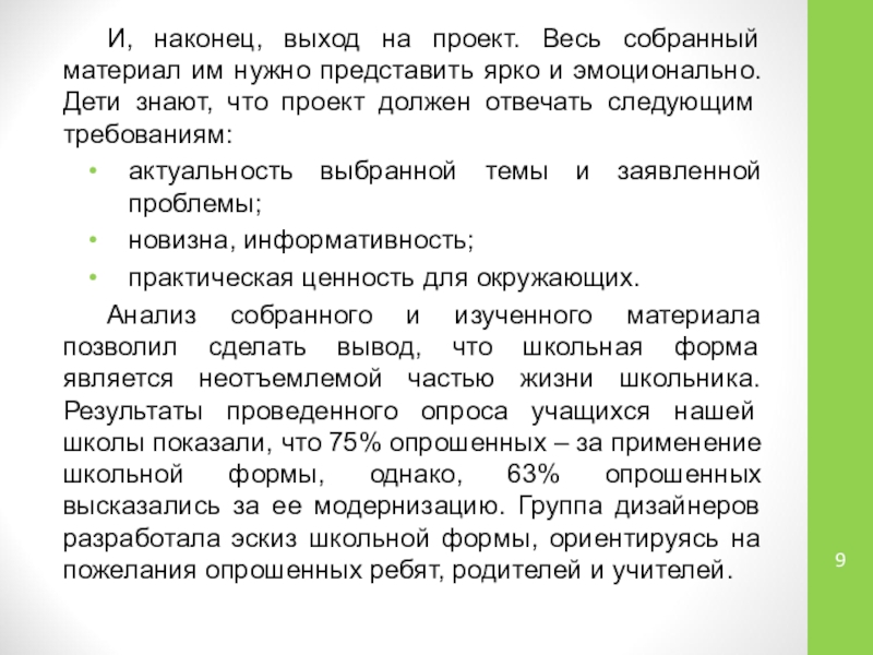 Слайд 9И, наконец, выход на проект. Весь собранный материал им нужно представить