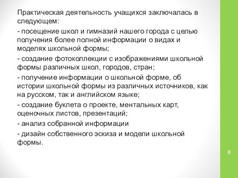 Слайд 8Практическая деятельность учащихся заключалась в следующем: